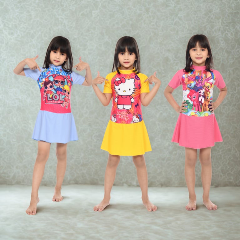 Setiap produk dibuat dari bahan premium yang ringan, elastis, cepat kering, dan tahan lama — ideal untuk berenang, berolahraga air, maupun bersantai bersama keluarga. Tersedia ukuran lengkap untuk anak-anak hingga dewasa, dengan pilihan desain ceria, trendy, dan tetap sopan sesuai gaya masing-masing.